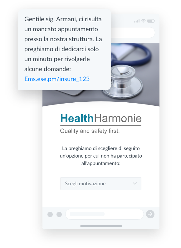 Il Mobile Journey ha condotto il sondaggio, avanzando al paziente una serie di domande. HealthHarmonie ha potuto, così, in seguito utilizzare le risposte per analizzare e migliorare i propri servizi.